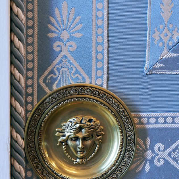 La restitution des textiles engage différents savoir-faire. Basée sur des archives – telles qu’un inventaire de 1807 et les mémoires d’ameublement des tapissiers Darrac et Susse – cette démarche méticuleuse permet de préserver et transmettre l’authenticité de ce patrimoine exceptionnel aux générations futures.