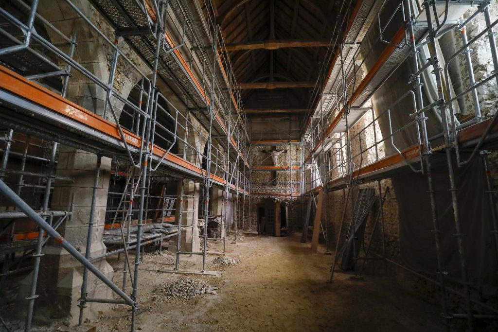 La 1e tranche des travaux de rénovation, achevée en 2014, la protège des eaux. Une nouvelle étape consiste à restaurer l’intérieur de l’édifice (murs, sols, installations électriques et de chauffage…).