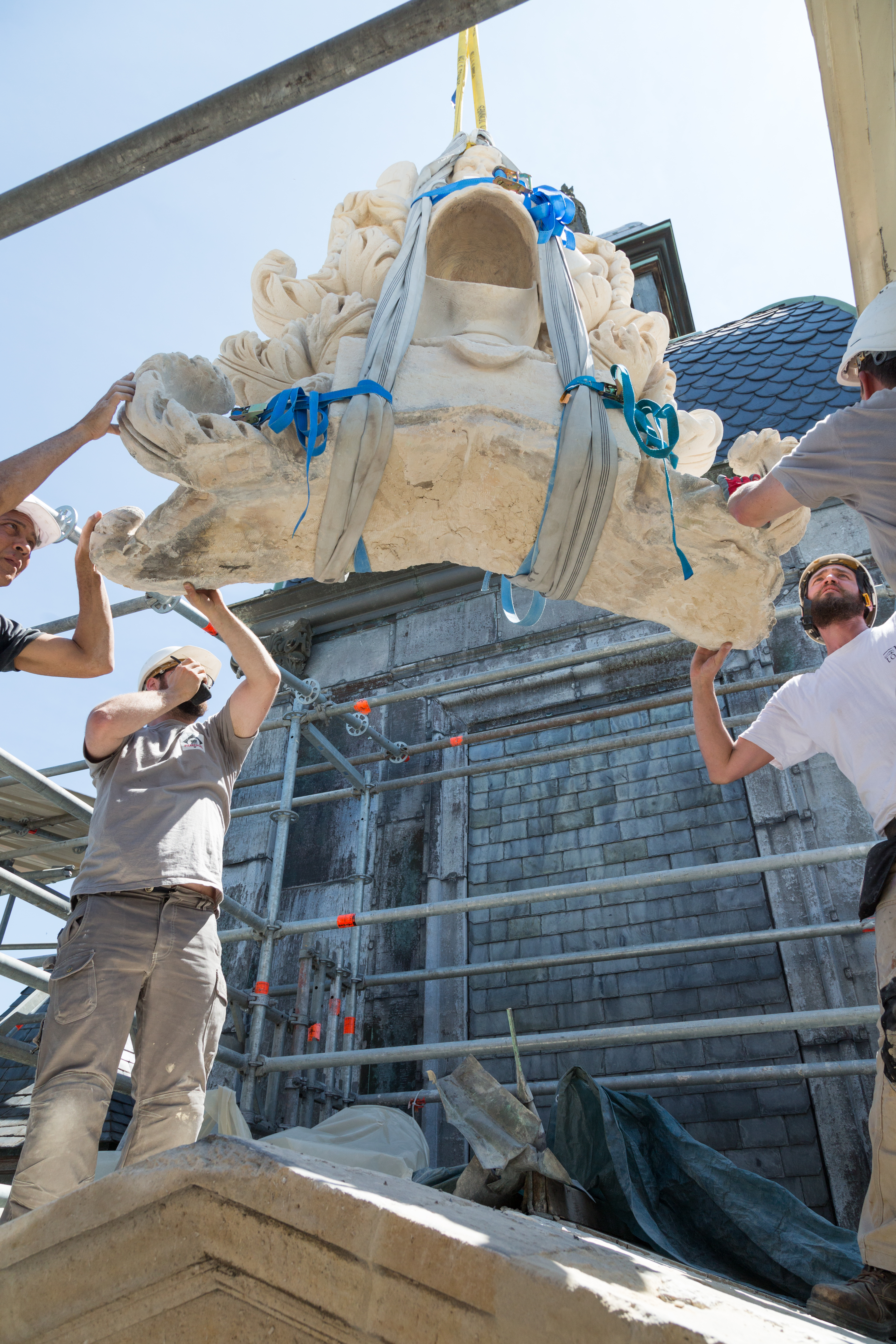 La restauration des sculptures sera réalisée par une société qui intègre dans sa démarche la formation d’apprentis qu’elle fait participer aux chantiers de restauration du patrimoine sur lesquels elle intervient.